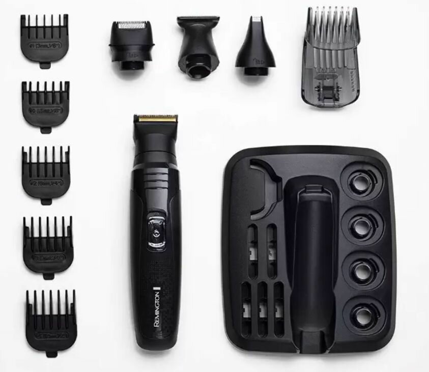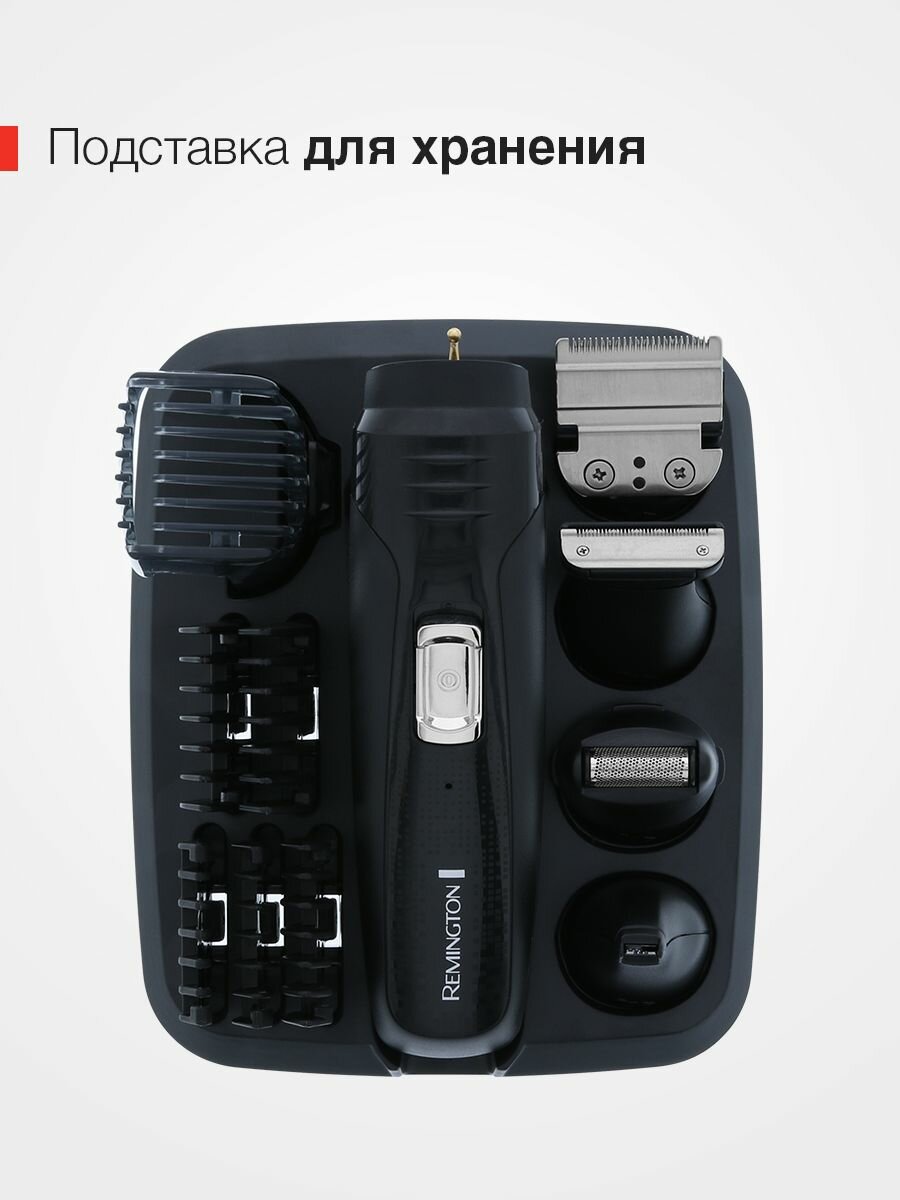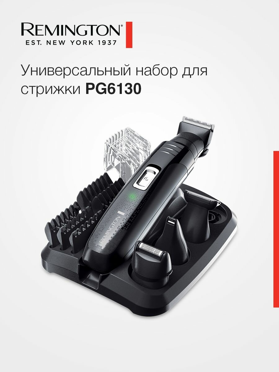 Купить Машинка для стрижки волос Remington Groom Kit PG6130, 10 насадок, самозатачивающиеся лезвия, автономная работа 40 мин, зарядка 16 ч, подставка для хранения, черный