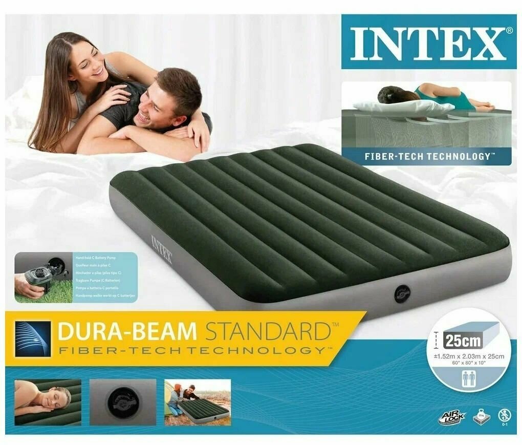 Купить Кровать надувная 64779 152х203х25см насос на батарейках INTEX