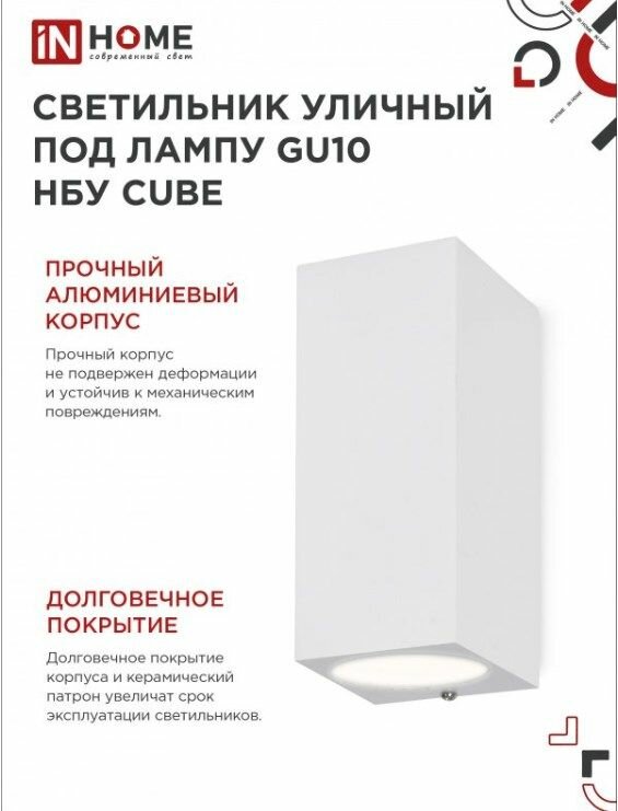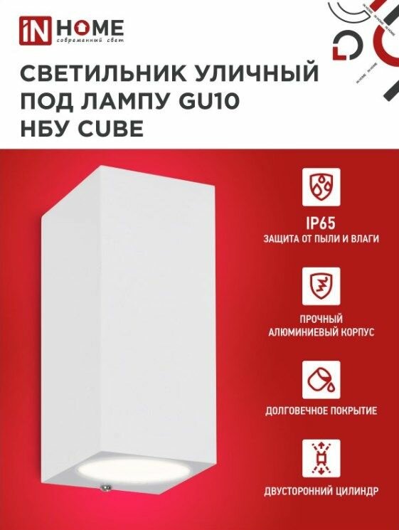 Ниже Вы можете прочитать отзывы на Светильник уличный двусторонний НБУ CUBE-2хGU10-WH алюминиевый под лампу 2хGU10 белый IP65 IN HOME, ознакомится с подробными характеристиками, посмотреть интересные обзоры и фотографии на Светильник уличный двусторонний НБУ CUBE-2хGU10-WH алюминиевый под лампу 2хGU10 белый IP65 IN HOME.