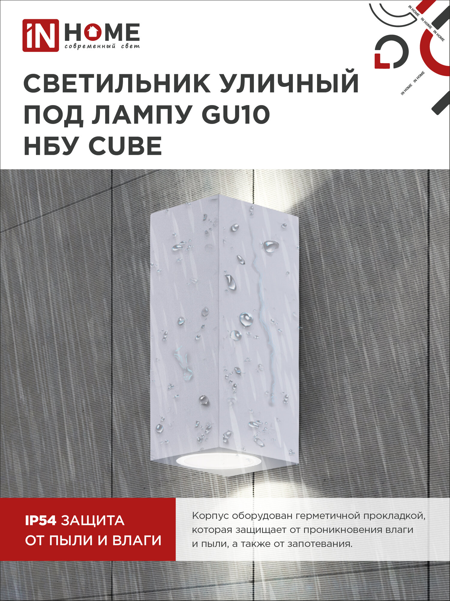Светильник уличный односторонний НБУ CUBE-1хGU10-WH алюминиевый под лампу 1хGU10 белый IP65 IN HOMEСветильник уличный односторонний НБУ CUBE-1хGU10-WH белый