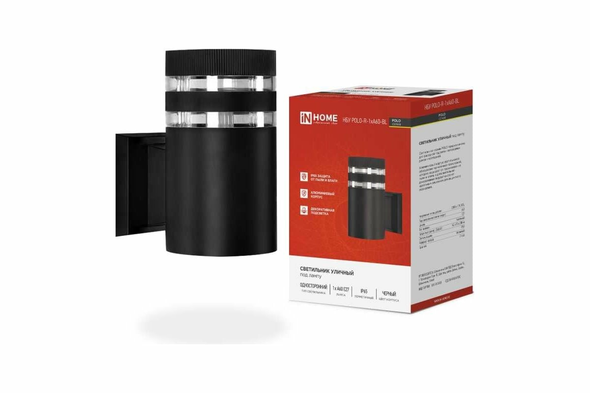 Купить IN HOME Светильник уличный односторонний НБУ POLO-R-1xA60-BL алюм под 1xA60 E27 черн IP54 (арт. 4690612045061)