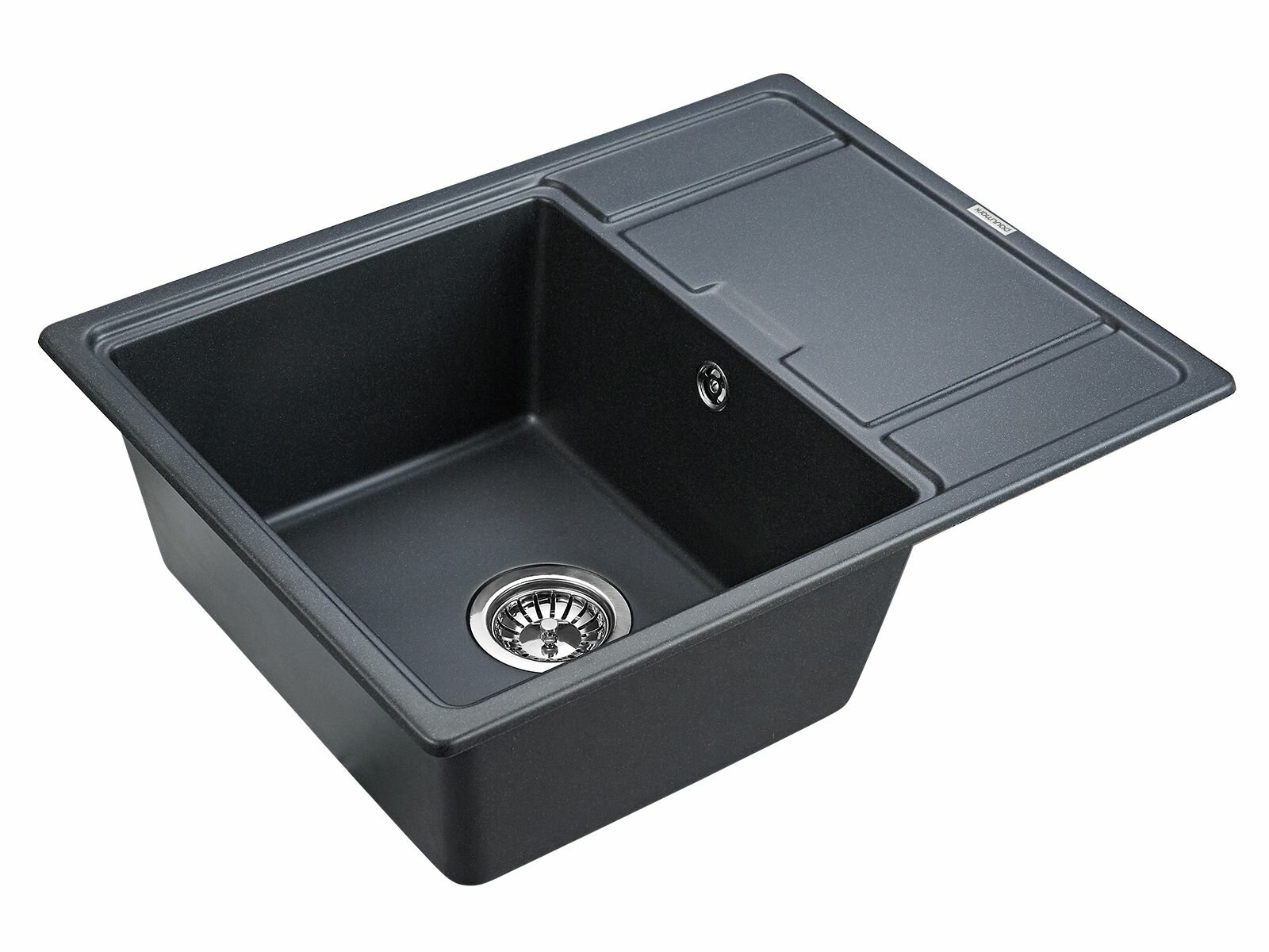 Кухонная мойка врезная Paulmark FLUGEN 50-650, 500х650 мм, гранитная, универсальное расположение крыла: слева / справа, цвет черный , PM216550-BL