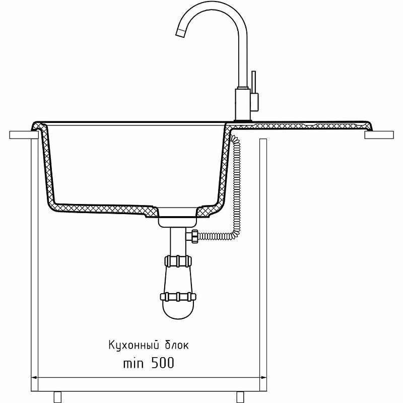 Врезная кухонная мойка 47.7 см, GranFest GF-ZL-52, черный