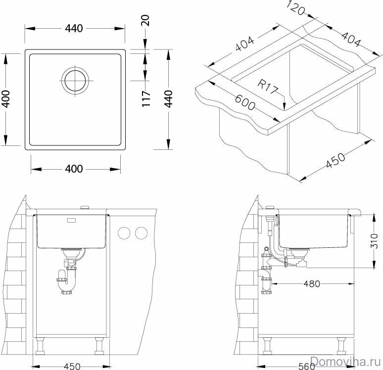 Мойка KOMBINO 30 KMB 90 FI 440X440 F/S