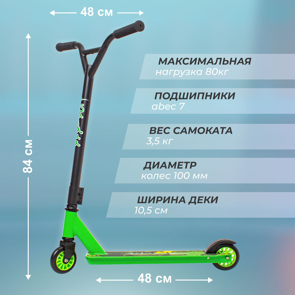 Самокат трюковой Saimaa SKYSTONE двухколесный зеленый интересное: