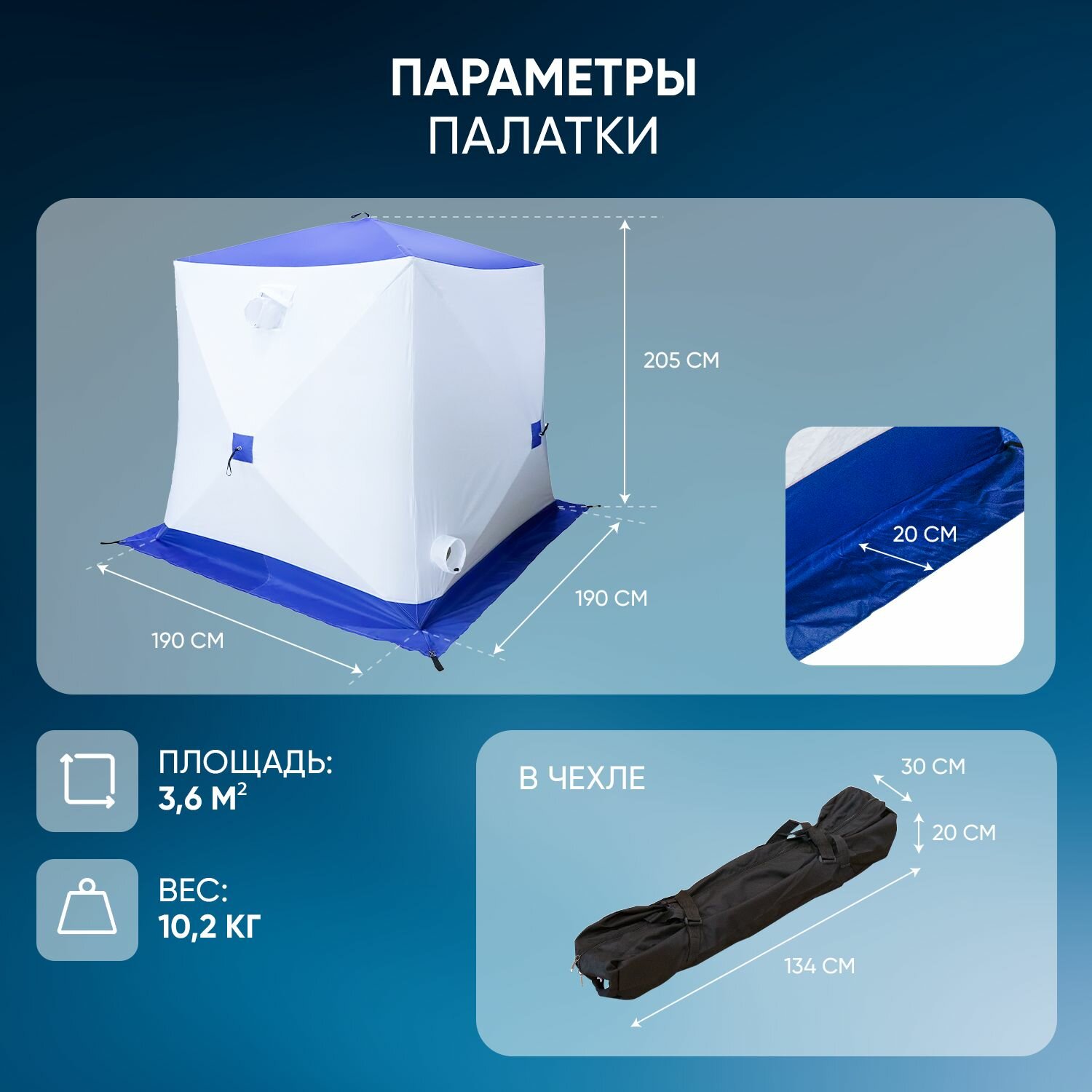 Палатка зимняя куб "следопыт", 2-х местная, 3 слоя, цвет бело-синий