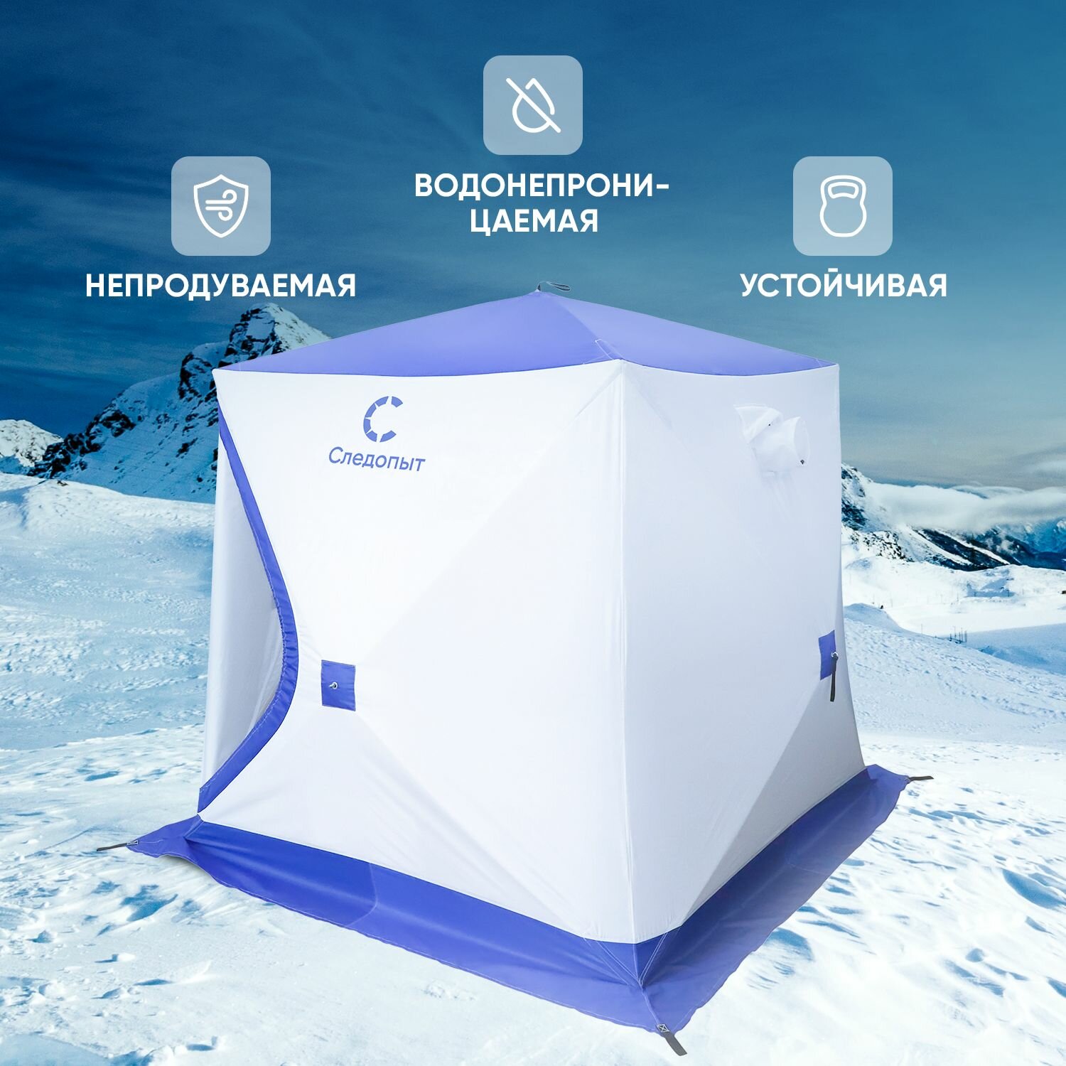 Палатка зимняя куб следопыт, 1,75х1,75, h-1,75м, S по полу 3,1 кв. м, 3 слоя, цв. синий/белый (PF-TW-07/2)