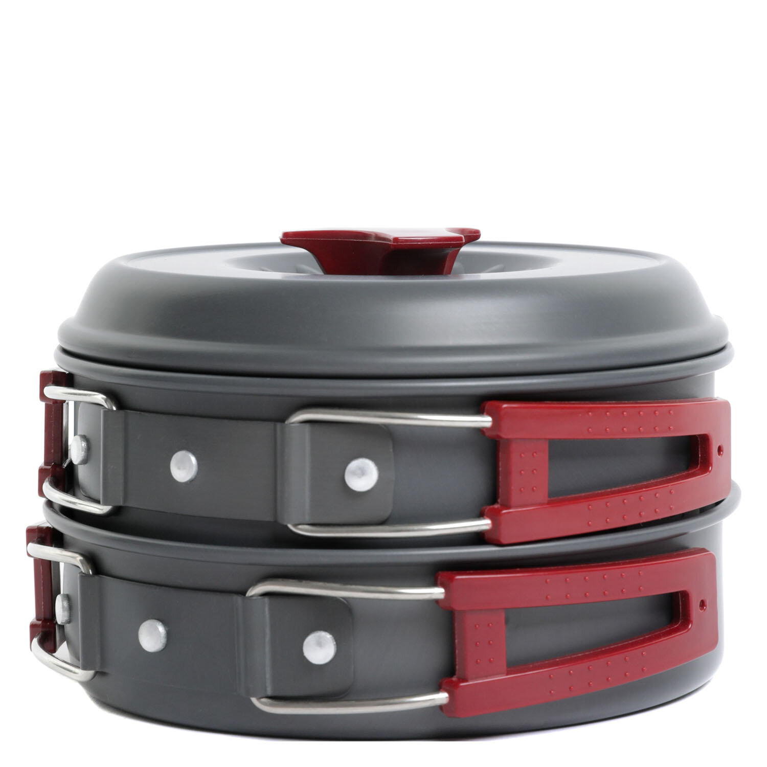 | Плюсы: | Довольно компактный набор посуды на одно-двух туристов.