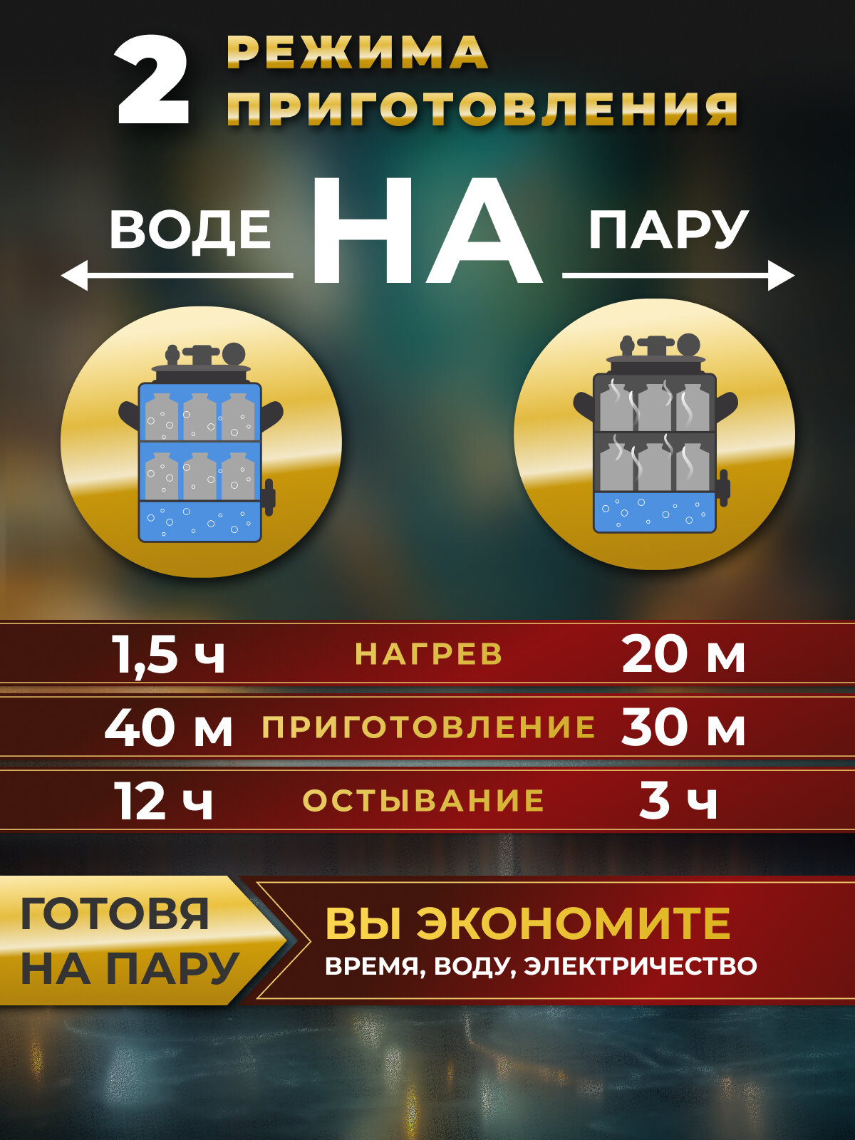 Купить Автоклав для консервирования Традиция Проф 2 в 1 Классик, нержавейка, 14 литров