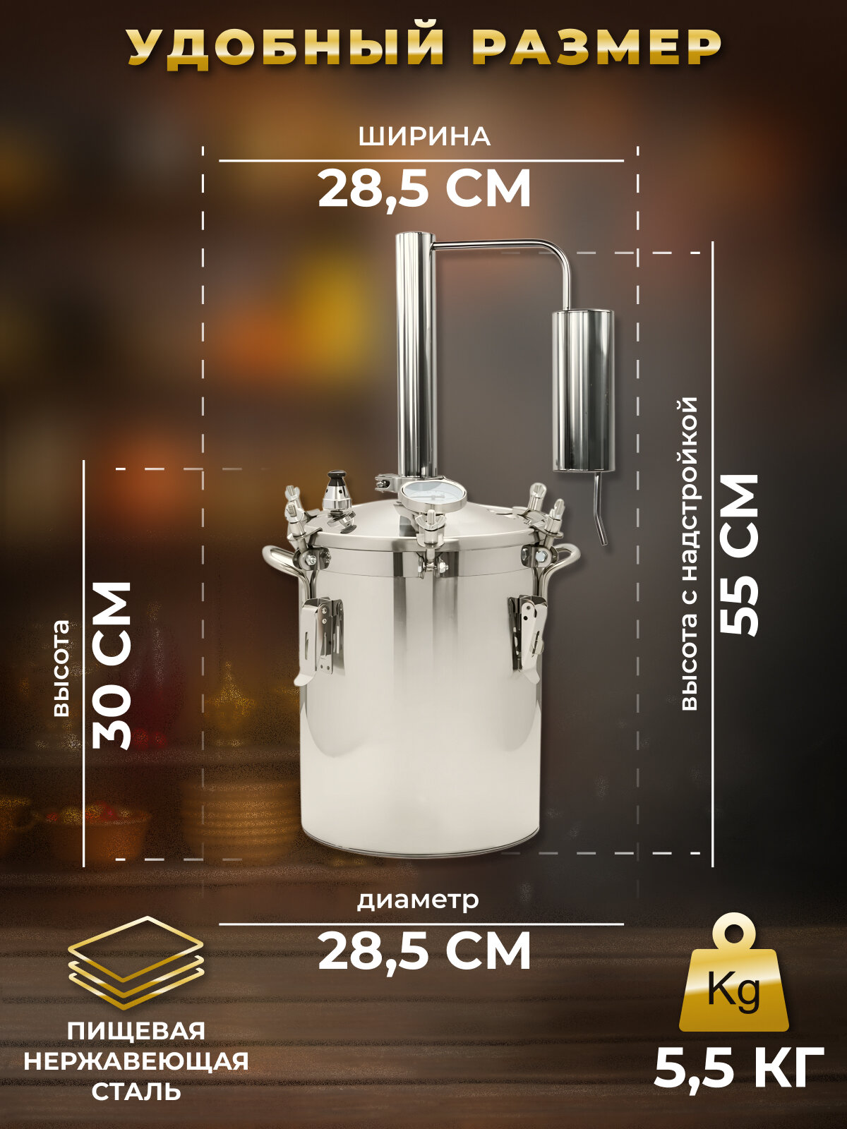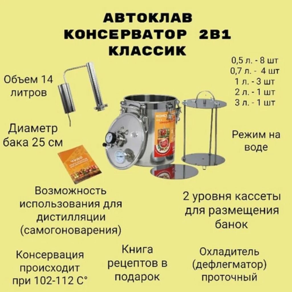 Автоклав-стерилизатор "Консерватор" 2в1 Классик, 14 л, манометр, термометр,надстройка "Классик" для дистилляции