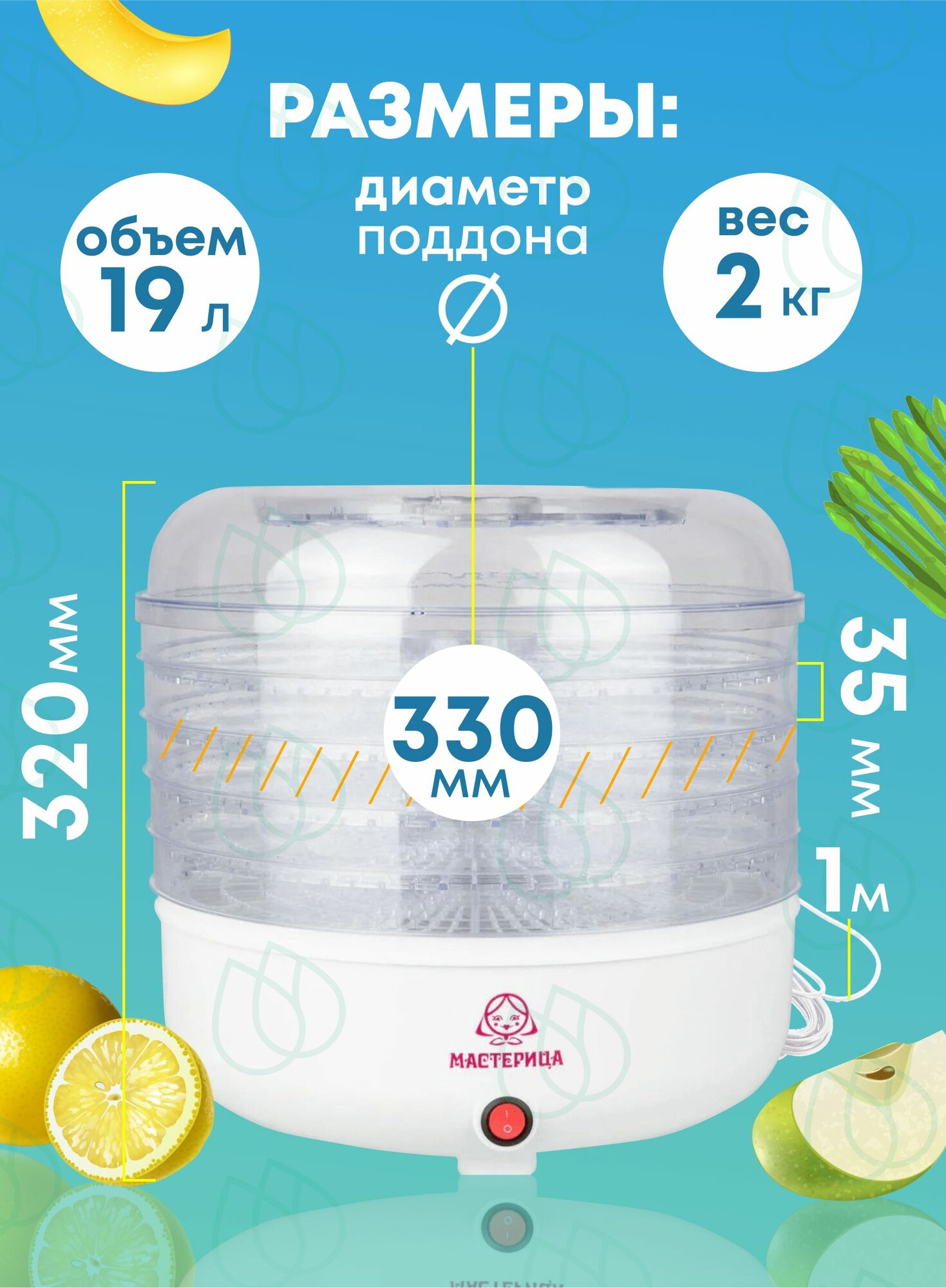 Сушка для овощей и фруктов Мастерица СШ-0305 150Вт, D 33 см, белая