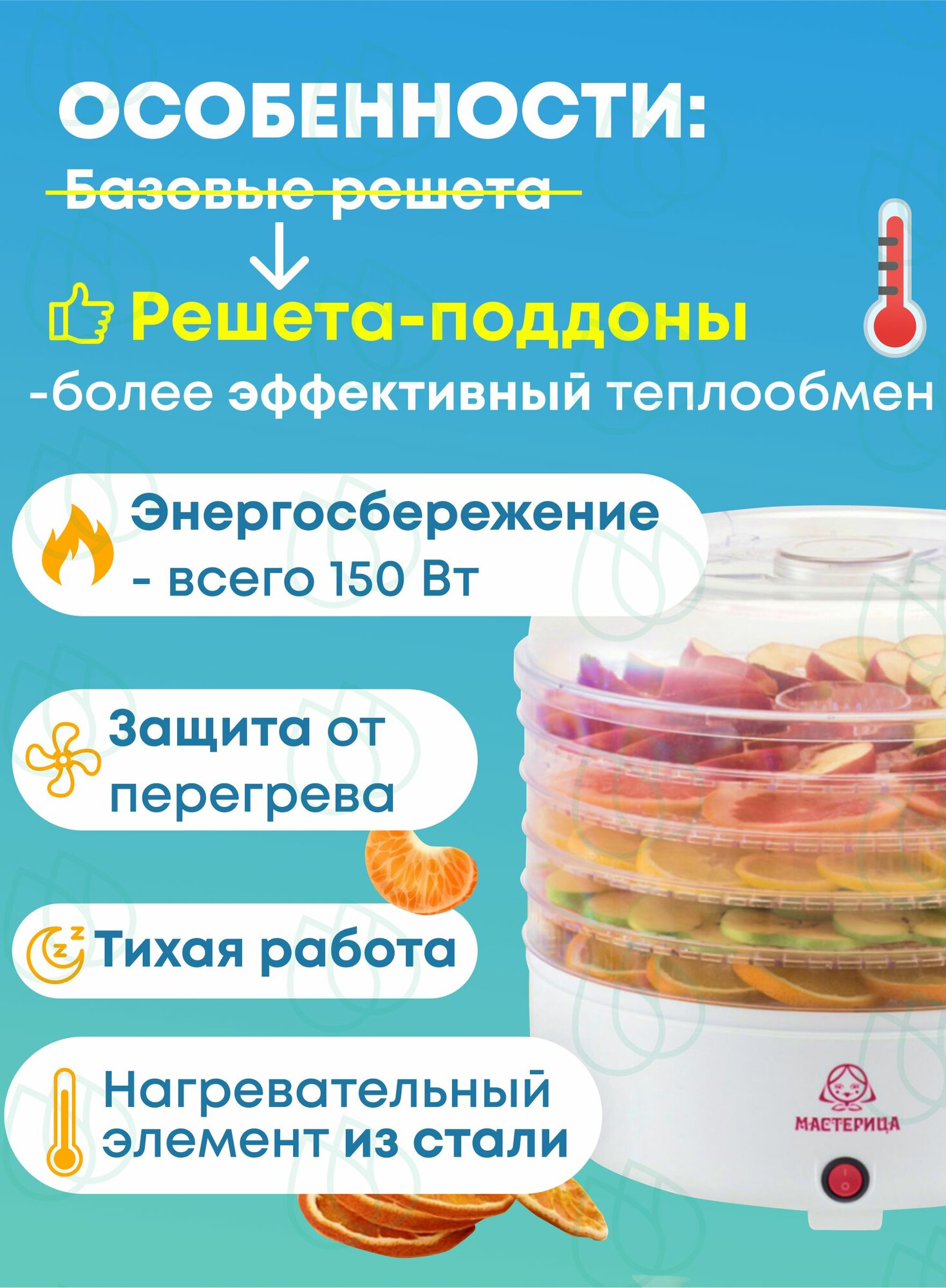 Сушилка для овощей Мастерица Сш-0305, 150Вт .