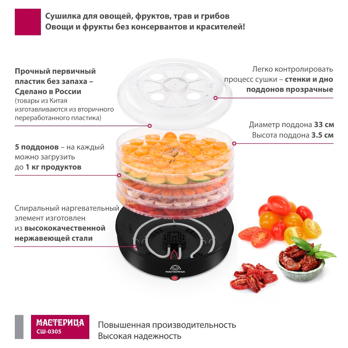 Сушилка для овощей и фруктов Мастерица СШ-0305, черный