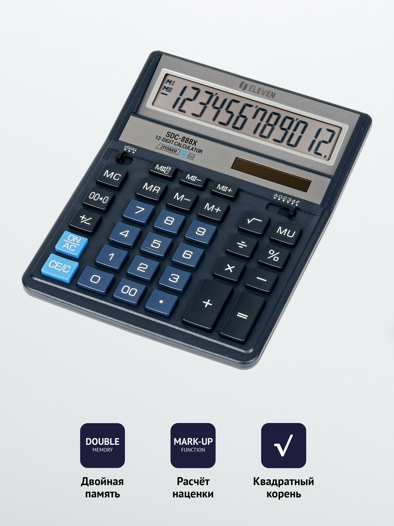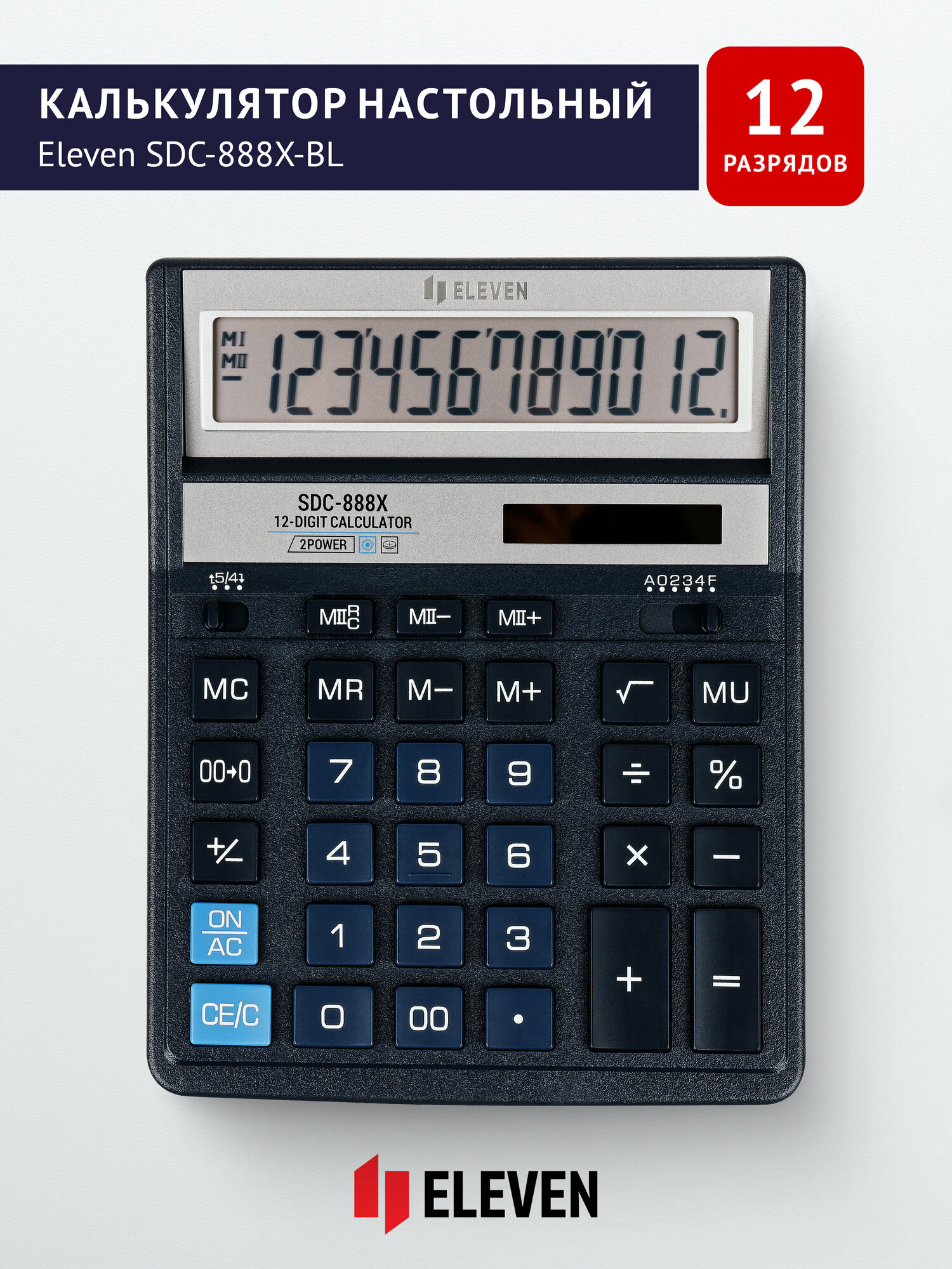 СохранитьКалькулятор настольный Eleven SDC-888X-BL (12-разрядный) двойное питание, синий (SDC-888X-BL) интересное: