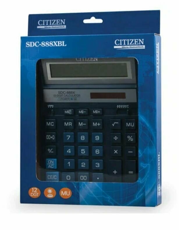 Калькулятор Citizen настольный, 12 разрядов, двойное питание, 205х159 мм, синий (SDC-888XBL)