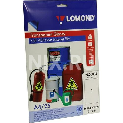 Пленка LOMOND для черно-белых и цветных лазерных принтеров, самоклеящаяся, прозрачная, 80 мкм, А4, 25 шт., 2800003 В комплекте: 1шт.
