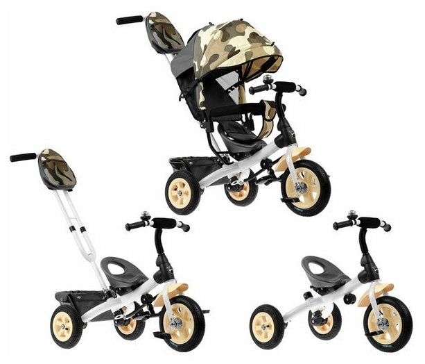 Лучик Велосипед трехколесный VIVAT-1 Принт Абстр чёрный/зелёный с крышей с ручкой,колеса надувн .