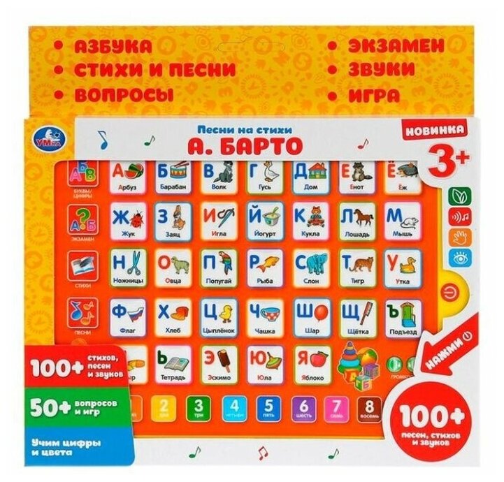 Купить ОбучающийПланшет Азбука (Барто А.) (звуковой модуль, 100 песен, стихов и звуков) KH170002-WP3, (Умка, 2021), Кор