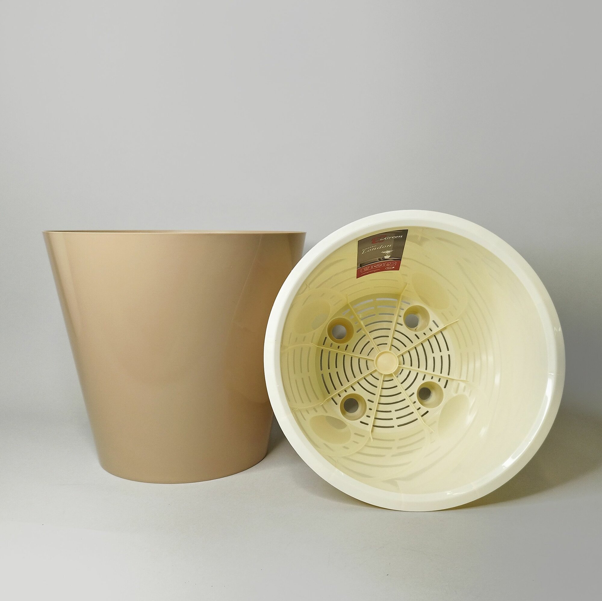 Горшок для растений с дренажной вставкой 10.5 л, сливочный