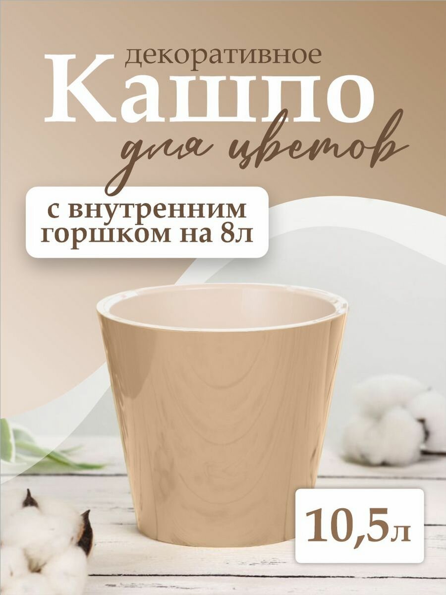 Купить Горшок для растений с дренажной вставкой 10.5 л, молочный шоколад 6208