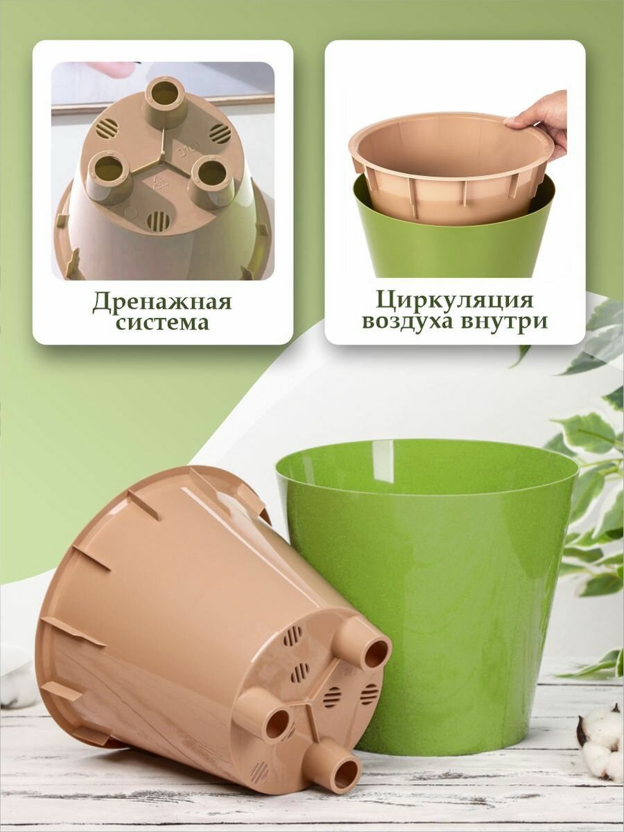 Горшок для растений с дренажной вставкой 5л, молочный шоколад