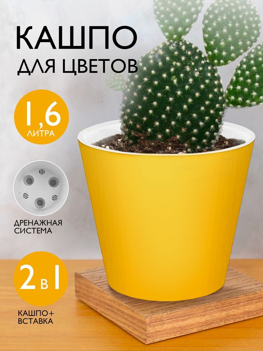 Купить Горшок для цветов с вкладкой Лондон 1,6 л; 14,7 х 16 х 16см, спелая груша
