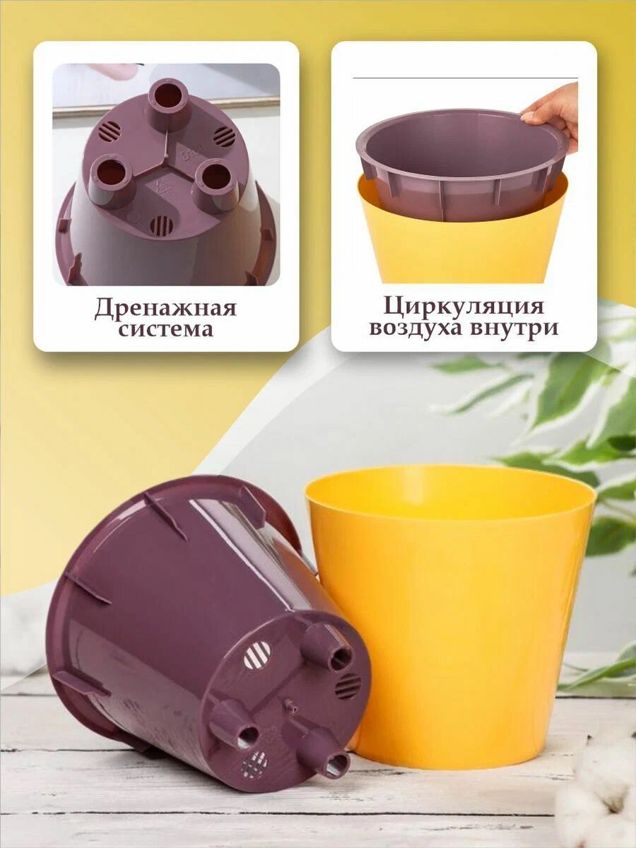 Горшок для растений с дренажной вставкой 5л, молочный шоколад