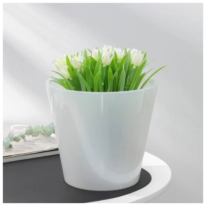 Горшок для растений с дренажной вставкой 3.3л, белый перламутровый