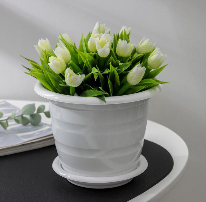 Горшок для цветов с поддоном 1 л "Виола", цвет белый