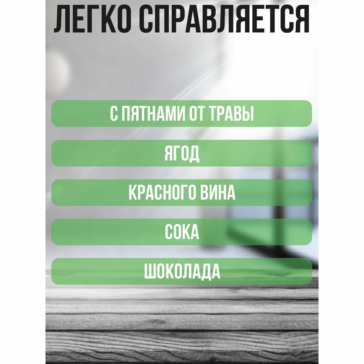 | Минусы: | Справляется не со всеми видами пятен. Сьедает краску на некоторых тканях. |