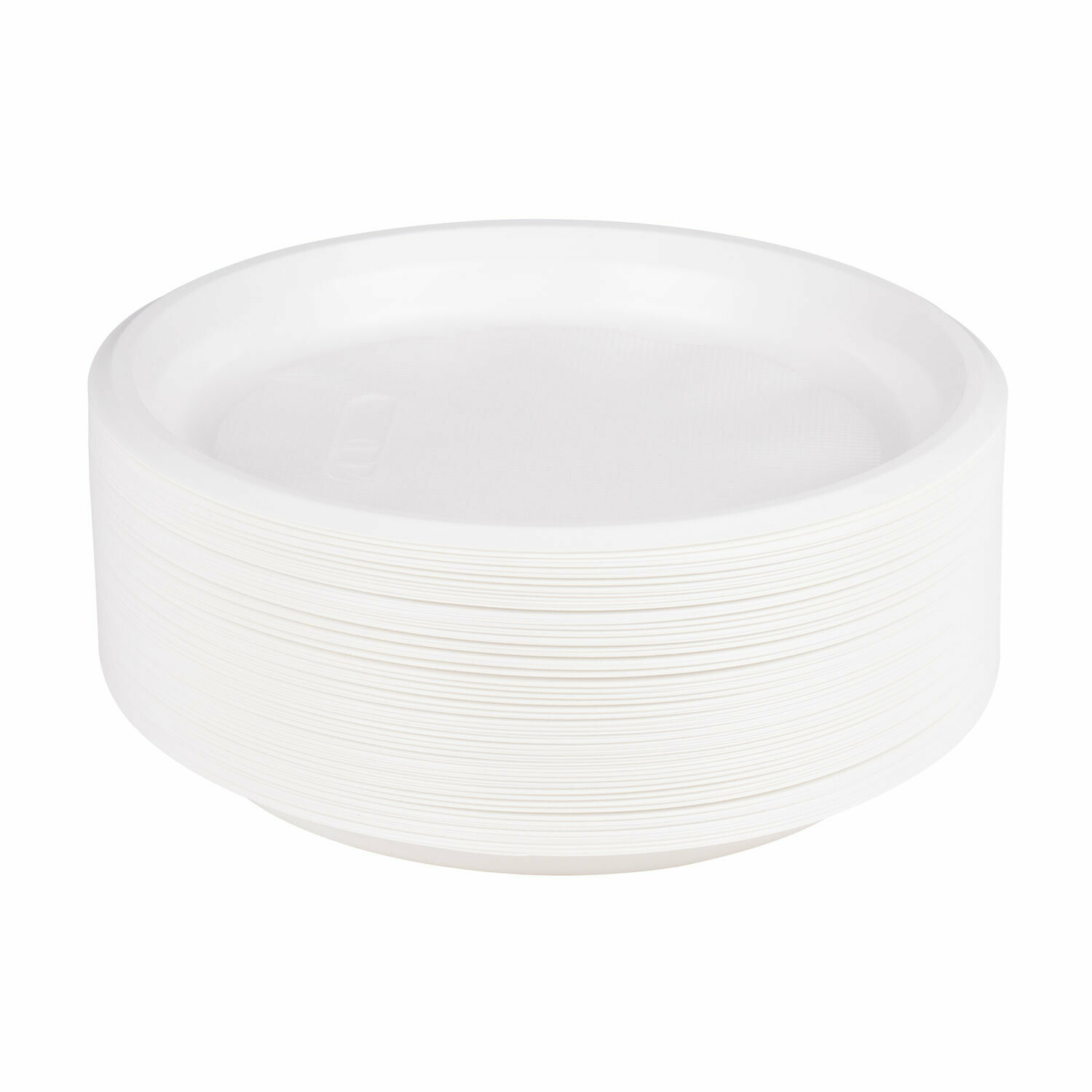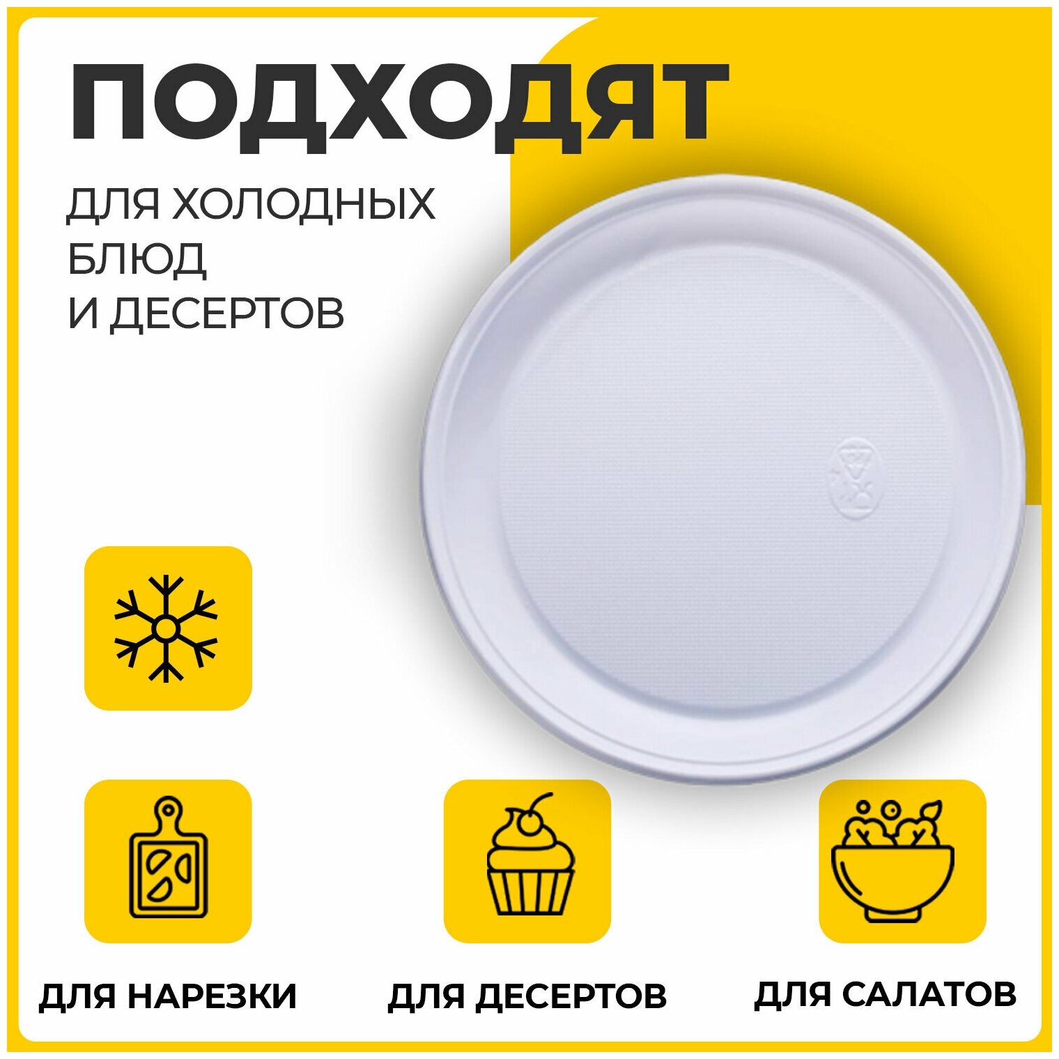 Одноразовые тарелки десертные, комплект 100 шт., пластик, d=170 мм, бюджет, белые, ПС, холодное/горячее, LAIMA, 600942 В наборе: 1компл.
