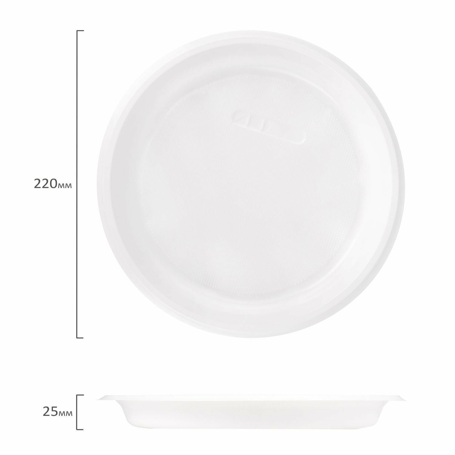 Купить Тарелки одноразовые пластиковые (одноразовая посуда) плоские, Комплект 100 шт., пластик, d=220 мм, Бюджет, белые, Пс, холодное/горячее, Laima, 600943