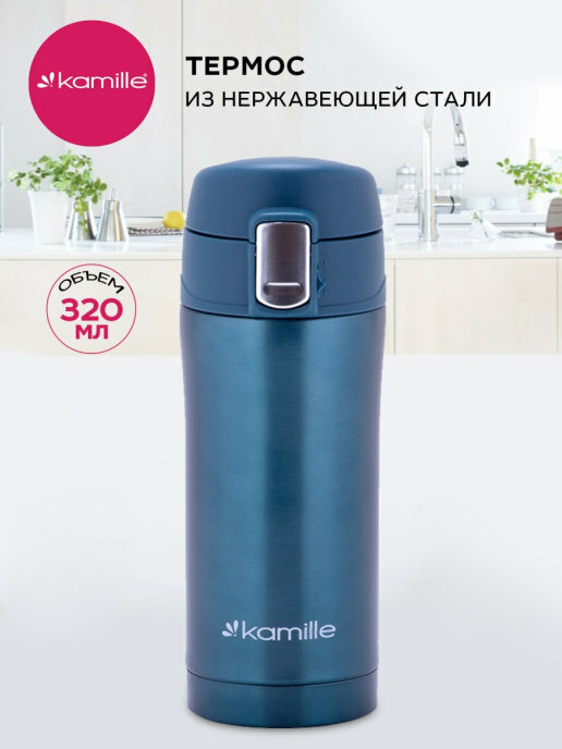Термокружка 320 мл. из нержавеющей стали Kamille KM-2087 (2087 / синий)