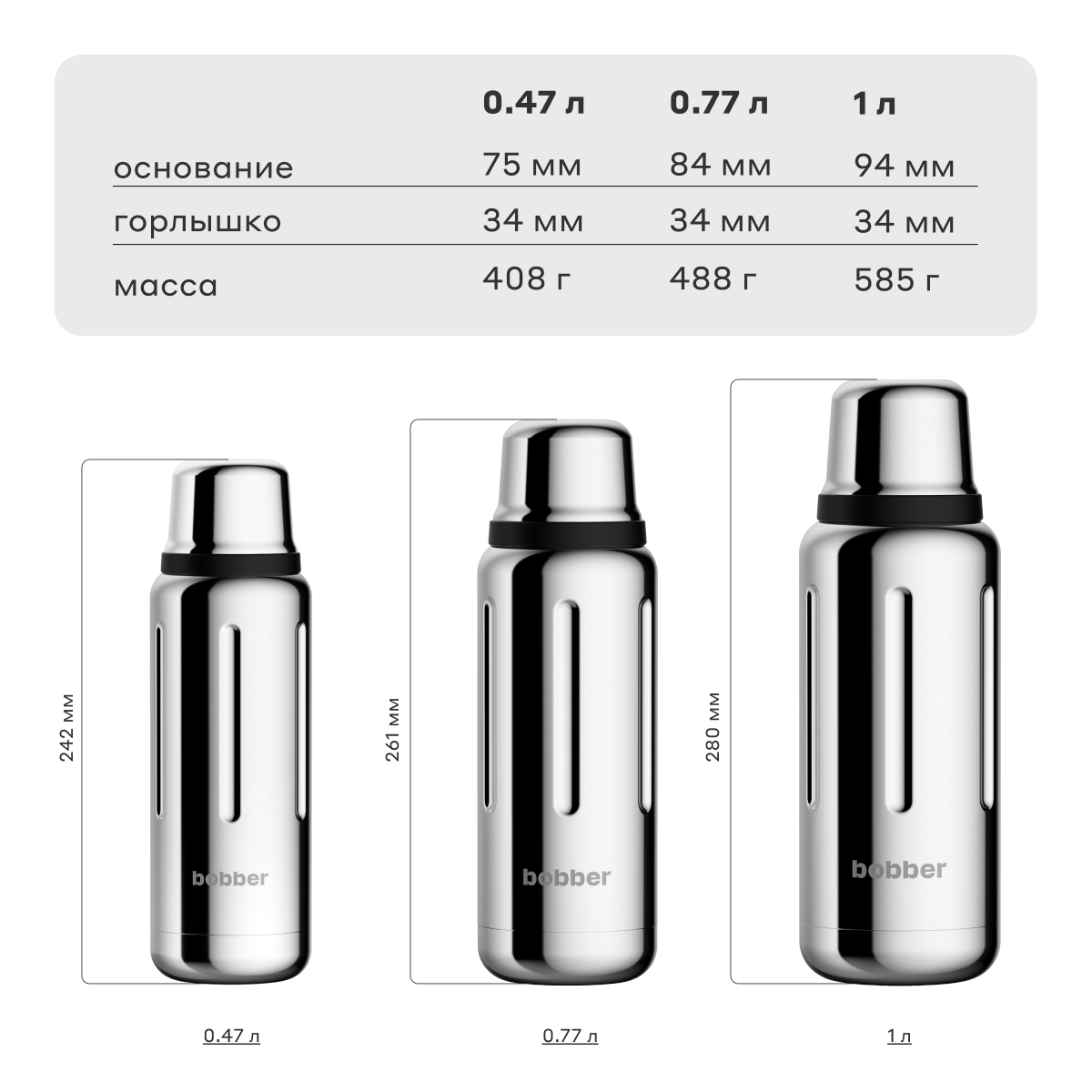 Bobber Термос "Bobber", 1 л, сохраняет тепло до 48 ч, сохраняет холод до 72 ч
