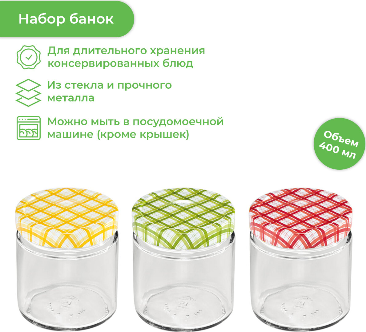 Банки для консервирования стеклянные TESCOMA DELLA CASA 400 мл, набор 3 шт, с крышкой