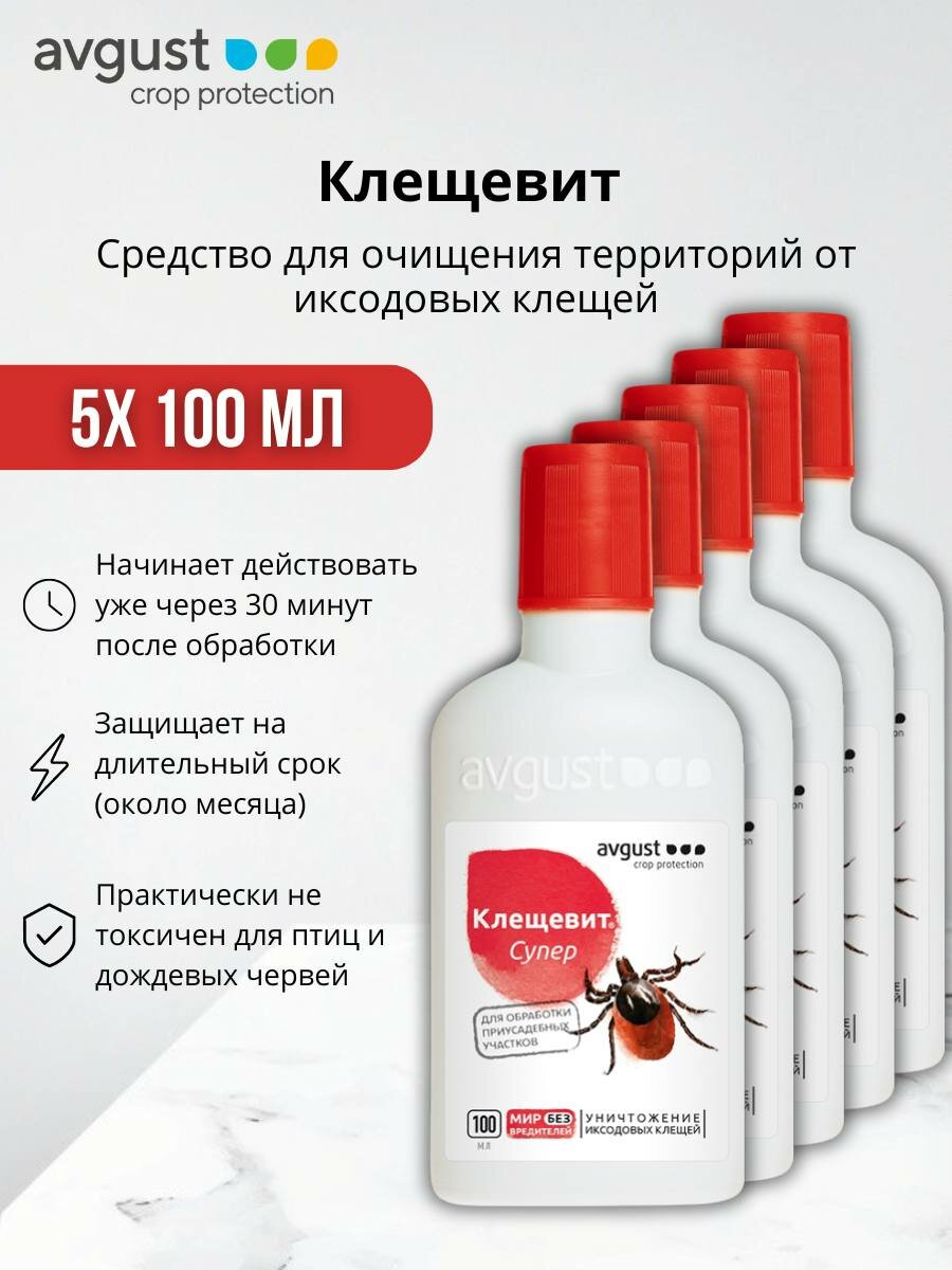 Средство для уничтожения клещей на участке клещевит Супер AVGUST 100мл, 2 штуки