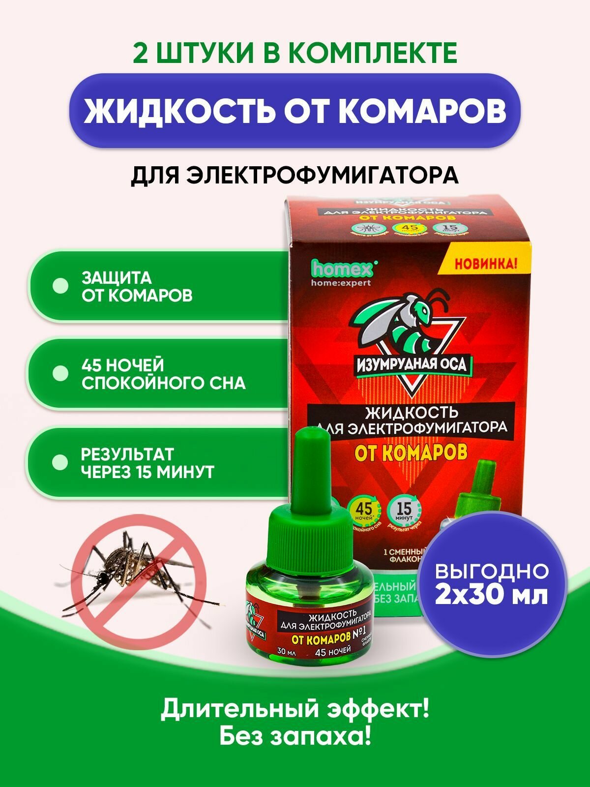 Купить Жидкость от комаров Кинкила 45ночей без запаха 30мл (24)