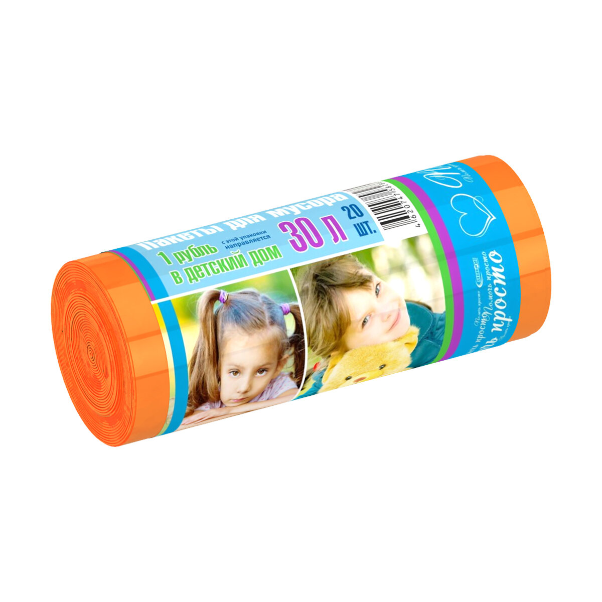 Мешки для мусора Avikomp «Помочь просто», повышенной прочности, 9 мкм, 30 л, рулон 20 шт, оранжевые