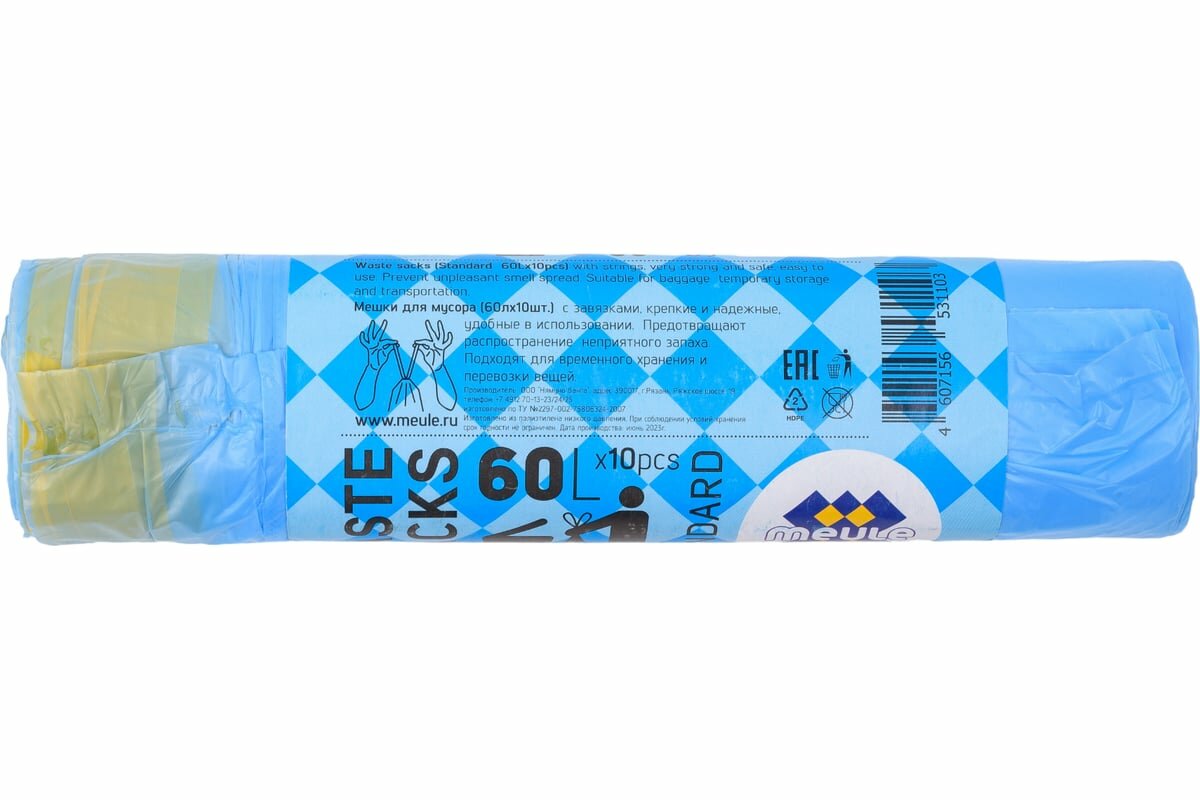Meule Standard Мешки для мусора с завязками голубые 60 л 10 шт в рулоне