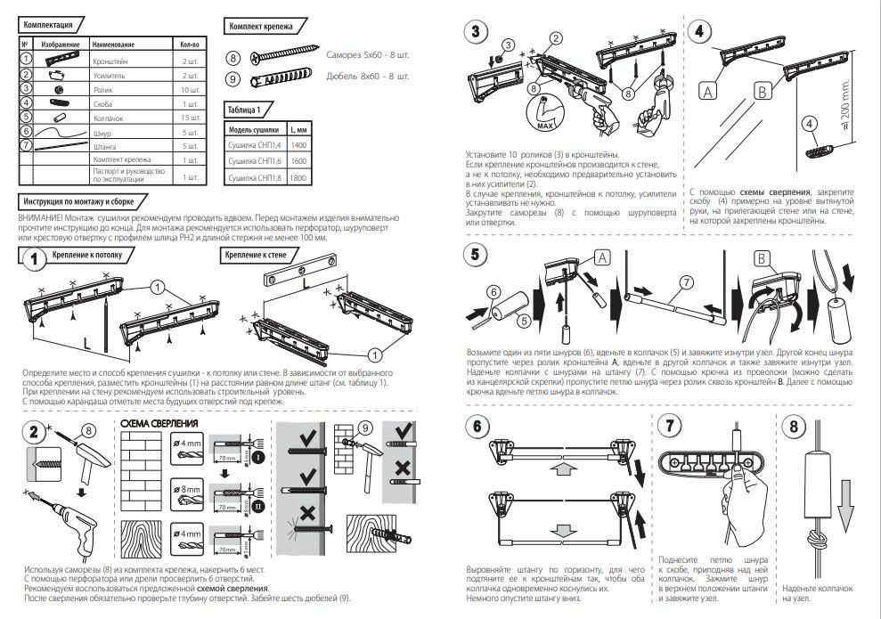 Сушилка настенно-потолочная длина сушильного полотна 8 м