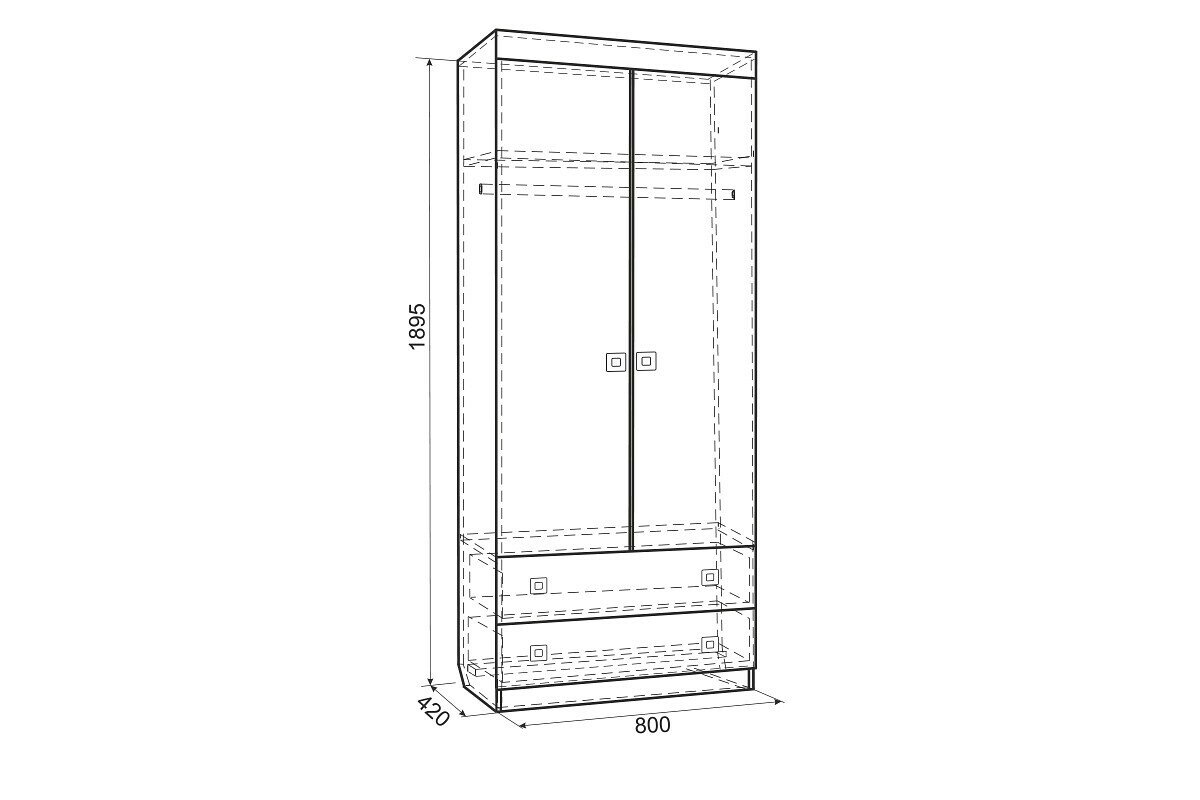 Шкаф распашной двухдверный "Форсаж", с ящиками и штангой, дуб крафт золотой/белый, 80*42*189,5 см., Mebelson
