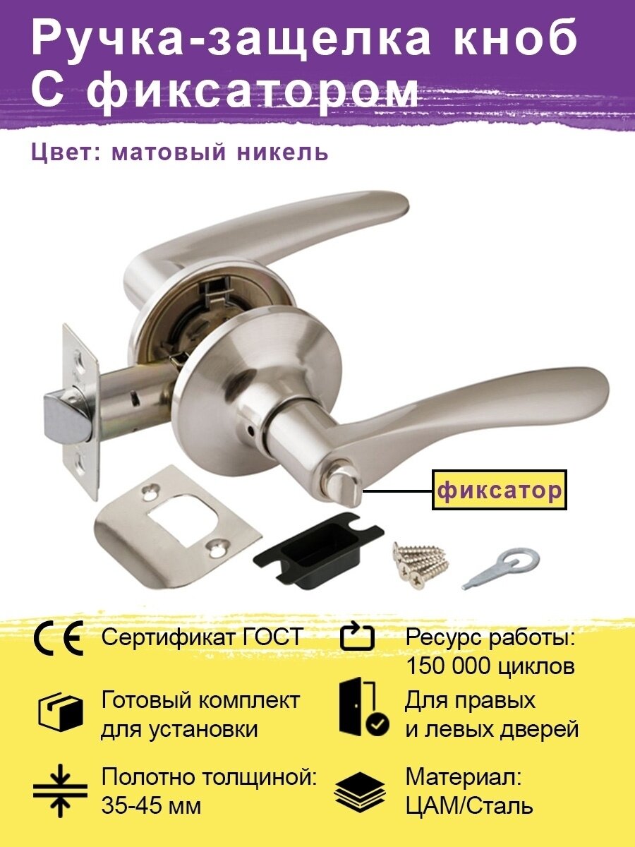 СохранитьРучка дверная межкомнатная с защелкой, цвет: Матовый никель интересное: