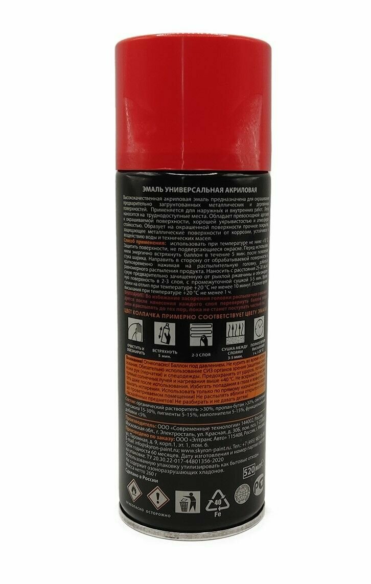 SKYRON Краска-спрей Красная акриловая (RAL 3020) (520мл) (SKYRON)