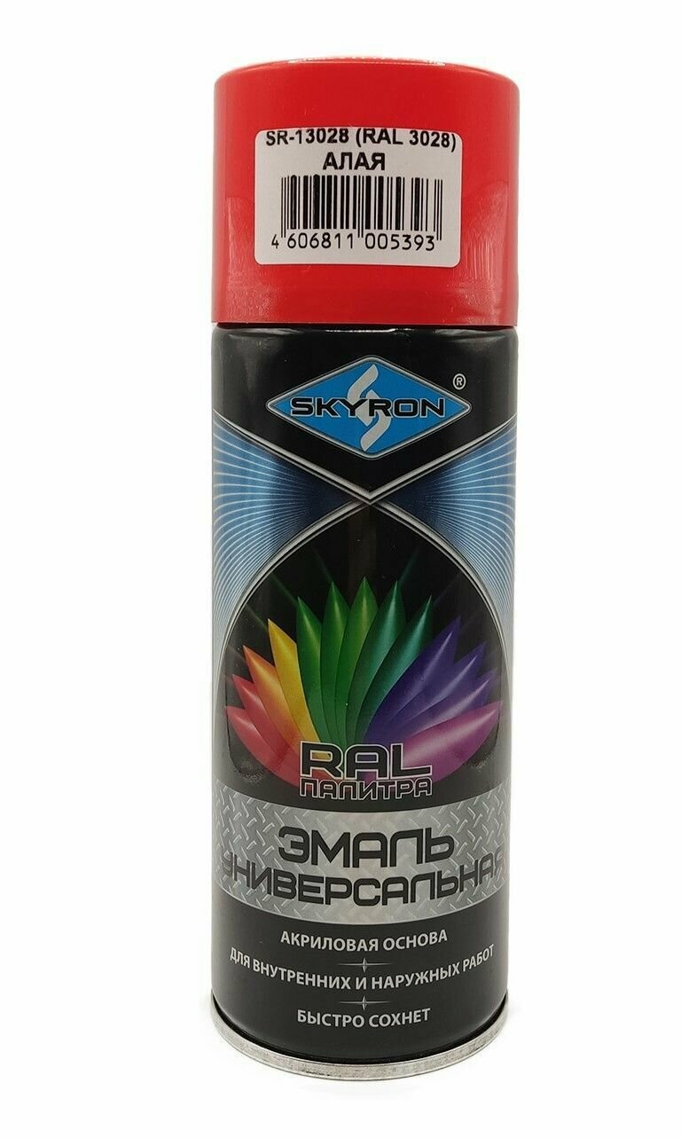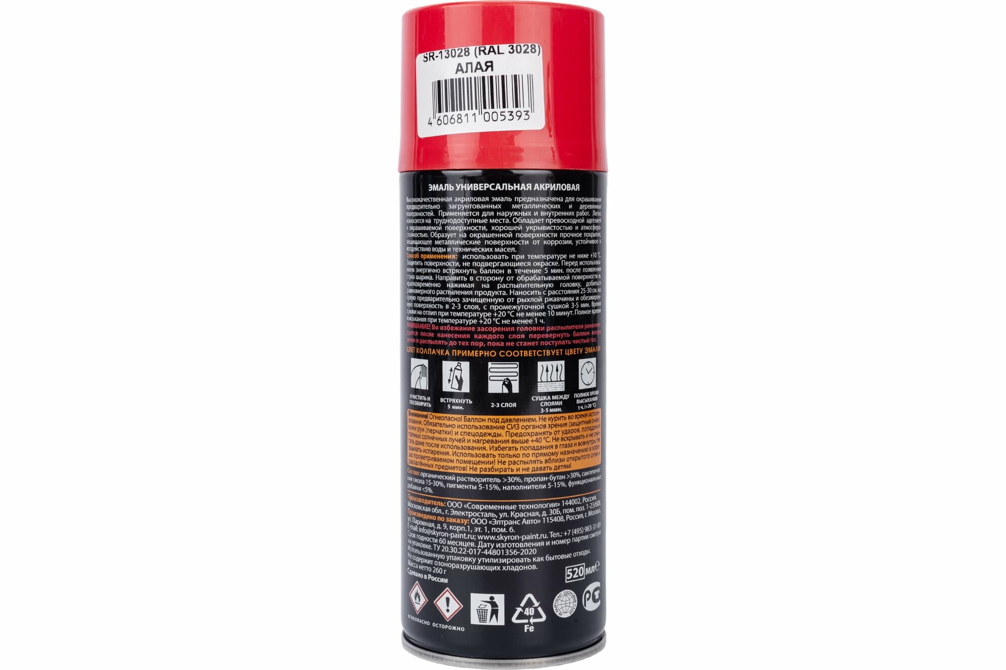 SKYRON SR-13028 Эмаль универсальная акриловая алая (RAL 3028) аэрозоль 520 мл SKYRON SR-13028