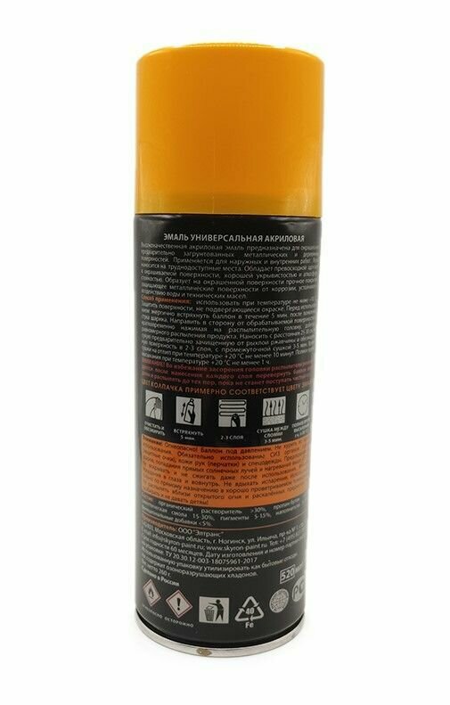 Эмаль универсальная акриловая SKYRON, оранжевая (RAL 2004), 520 мл.
