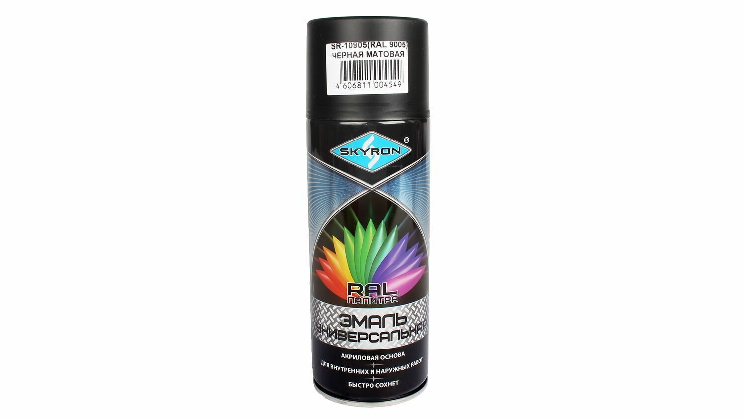 SKYRON SR-10905 Эмаль универсальная акриловая черная матовая (RAL 9005) аэрозоль 520 мл SKYRON SR-10905 1шт
