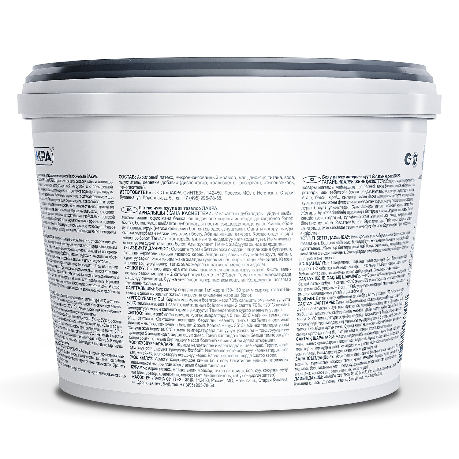 Краска латексная Лакра Для стен и потолков моющаяся матовая белый 3 кг