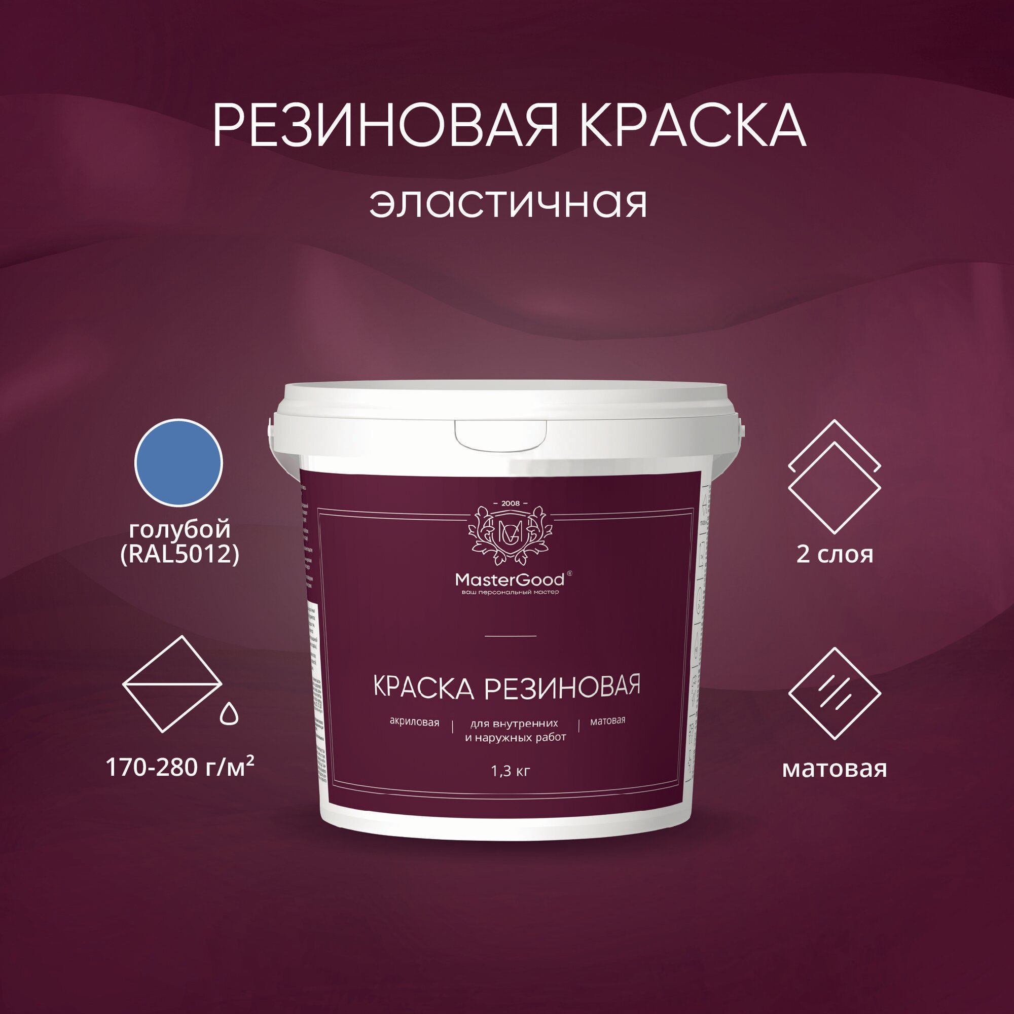 Купить MasterGood Краска резиновая моющаяся акриловая для помещений с повышенной влажностью Голубая (RAL 5012) (1,3 кг)