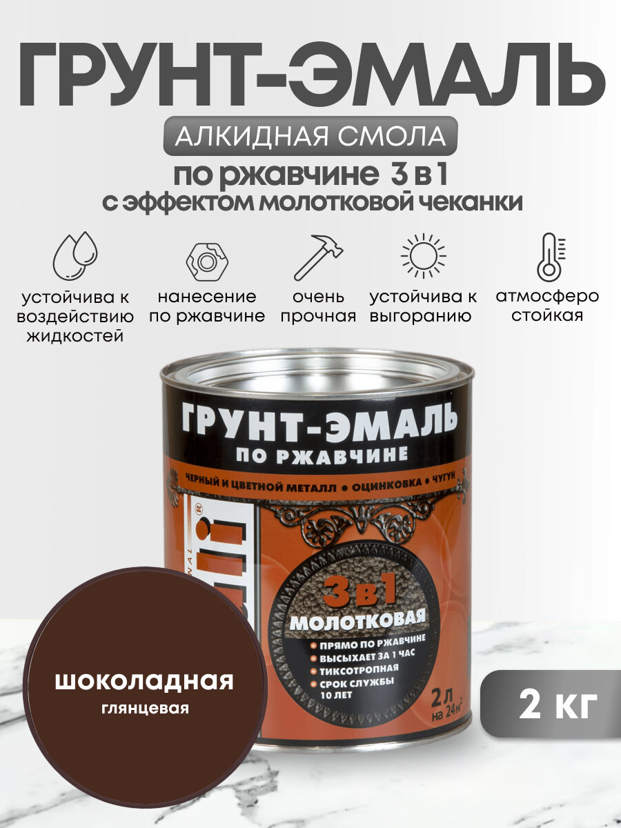 Грунт эмаль 3 в 1 по ржавчине молотковая шоколадная 2л