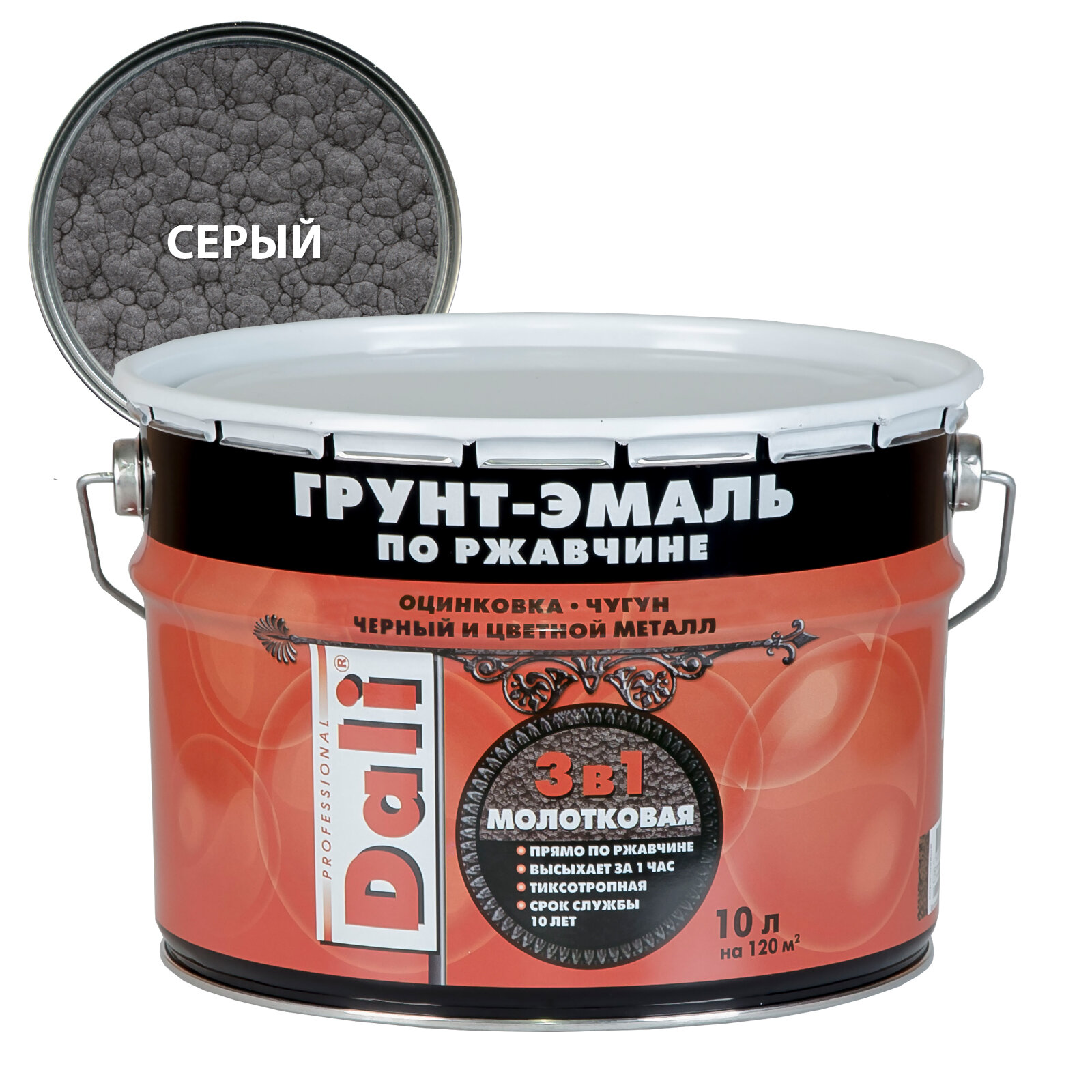 Купить Грунт-Эмаль по Ржавчине 3 в 1 Dali 10л Серый с Молотковым Эффектом / Дали Грунт-Эмаль.